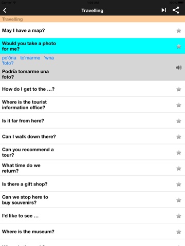 Collection of over 700 commonly-used Spanish phrases and vocabularies for travelers and beginners. All phrases categorized by topics, have transcription and voiced. This is to help you learn Spanish in even more entertaining manner.