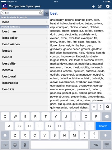 I wanted a good, easy-to-use resource for synonyms, because I am a writer and often find myself on a quest for that elusive Right Word. I wanted a meal, and got a banquet with this app. Just type in kind-of the word you want, and you will get a rich, exhaustive list of every possible synonym. Enlightening and entertaining. I learn a good handful of new words each time I use it. I use this app so often that I decided it was time to give it the 5-star review it deserves!!