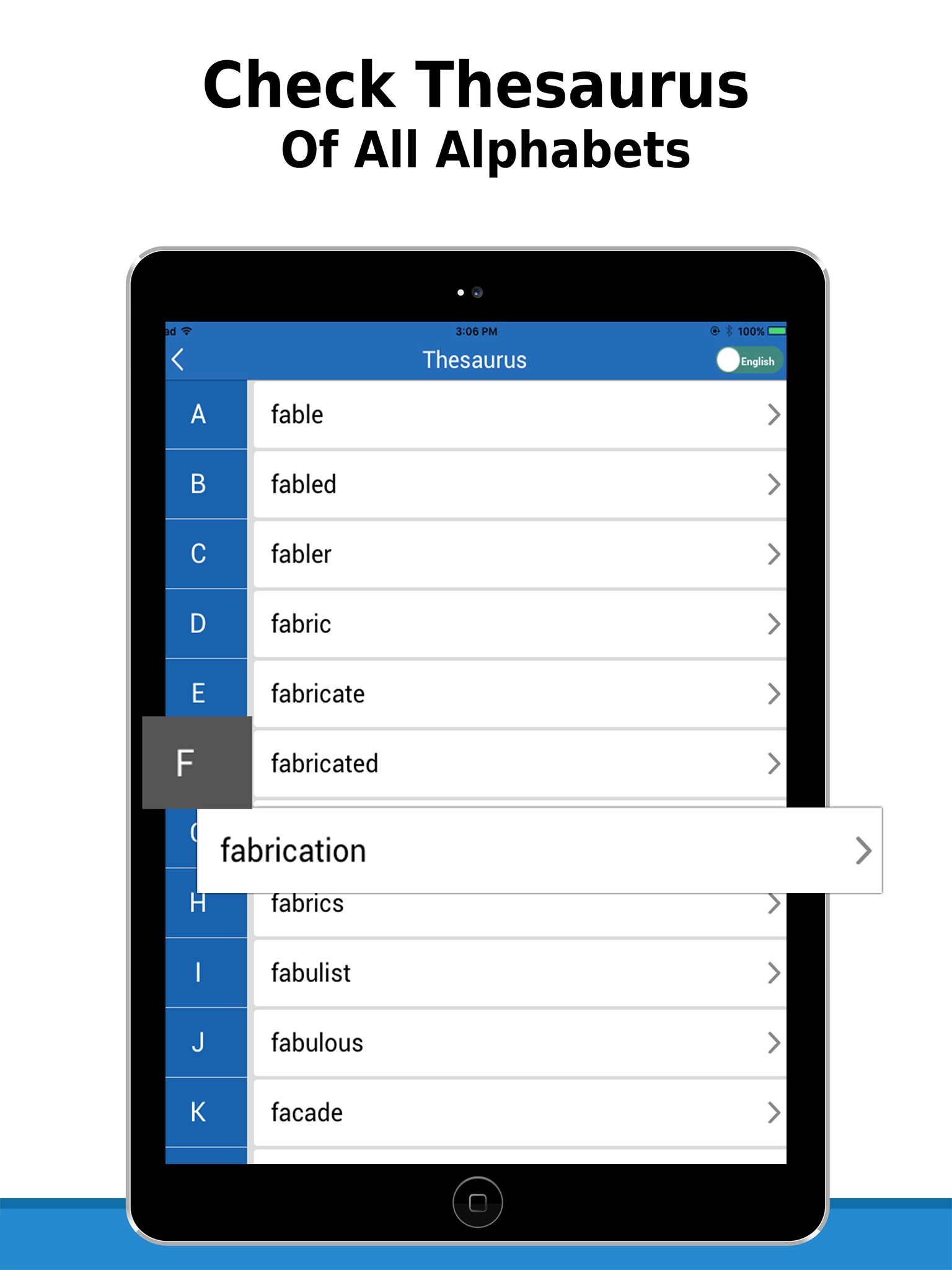 • Thesaurus: Keeping in mind the ease of user, this feature is included in English to Tagalog Dictionary or Tagalog to English Dictionary so that user may select any of the alphabet from the list and words staring from that particular will be displayed in list form.