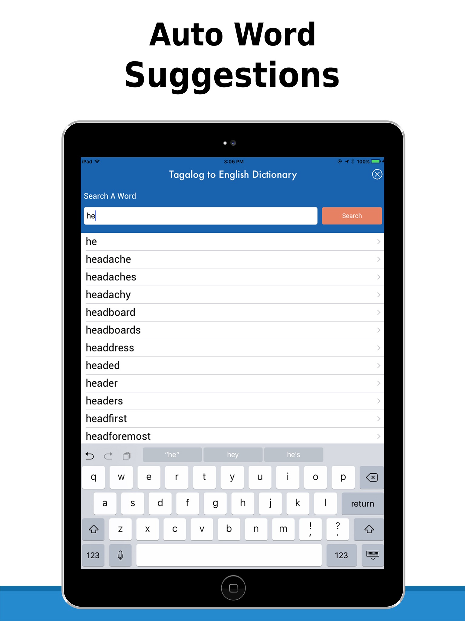 English to Tagalog Dictionary is best advance & accurate IOS Dictionary Application, specially designed for Tagalog and Filipino speakers who are keen to learn meanings of English language through Tagalog dictionary. The Tagalog Dictionary basically has two modes, you can search words or translate from English to Tagalog or Filipino to English that can be switched through Toggle button present on main home screen.