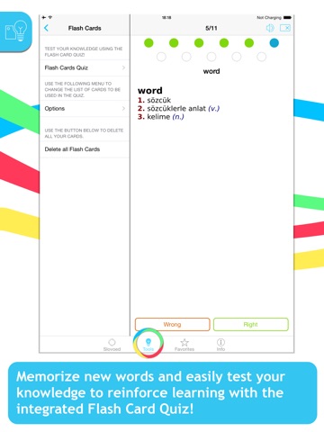 • Flash Card Quiz lets you add new words to flash cards, memorize them and test your knowledge as many times as you wish.
