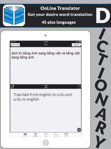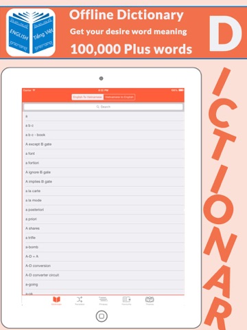 2- Application contains English to Vietnamese Dictionary with more than 100,000 words.