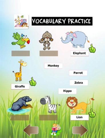 English Vocabulary Quiz toddler. With Games Vocabulary English simple to match the words with animal names. Just pair to correct the image of the animals. Match any words in English. Practice games are simple to learn English for preschool children of primary school children to learn the basics. To develop into English for a better future. A lot of vocabulary Will allow us to create a sentence in English. Or foreign language easier. Training paired with a beautiful image of a gradual recognition that children like to practice their homework together. Learn how to study English together today through the mobile phone or tablet. I have to go to classes to learn English where required.