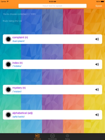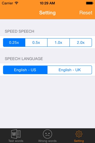 This app helps you learn, test and pronounce English words.