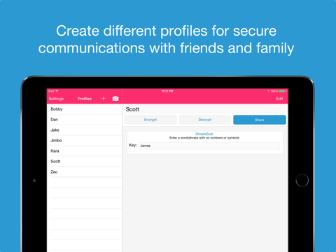 - Multiple encryption levels for each profile for more secure messages