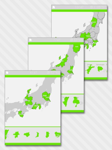 There are stages where you can play with prefecture names, stages with capital city names, and stages with only shapes and no names displayed.