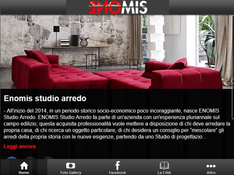 ENOMIS Studio Arredo fa parte di unazienda con unesperienza pluriannale sul campo edilizio; questa acquisita professionalità vuole mettere a disposizione di chi deve arredare la propria casa, di chi ricerca un oggetto particolare, di chi desidera un consiglio per “mescolare” gli arredi della propria storia con le nuove esigenze, partendo da uno Studio di progettazione degli interni della Vostra casa, dal progetto con arredatori, geometri, ingegneri, alla realizzazione delle opere murarie, idrauliche, elettriche fino allarredamento finito chiavi in mano sia su nuovo che restauro.