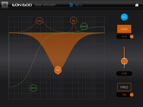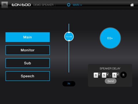 EON Connect is a smart device application for controlling up to four JBL EON600 speakers via the EON’s built-in bluetooth functionality. EON600s DSP parameters, which include 3 PEQs, a Hi and Lo Shelf, delay, output mixing, and preset creation are available exclusively through this app. Additionally, user can update their speakers firmware using EON Connect.