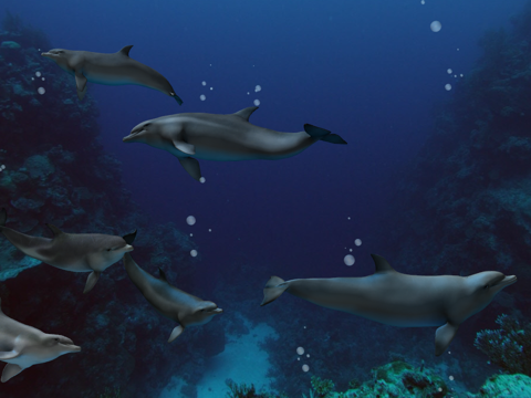 Thanks to EONs powerful 3D engine, which now brings desktop-quality 3D applications to mobile devices, you can experience the wonder of a virtual aquarium full of dolphins. Touch the dolphins and see them respond by swimming faster and making different dolphin sounds. Call on up to 4 dolphins to do a special animation right in front of your eyes. Choose between 3 environments.