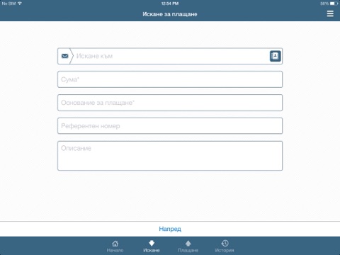 Удобен начин да поискате пари от Ваши приятели или контрагенти. Добавяте пояснителен текст към искането. Изпращате еmail или SMS на получателя с инструкция и код за плащане. Лесно следите постъпилите плащания.