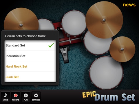 Choose from a range of 4 different drum sets (2 free), standard, industrial, hard rock and junk! Each sound is professionally recorded and provides a realistic sound.
