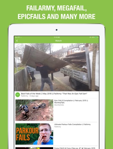 Update frequently from many sources like FailArmy, MegaFail, EpicFails and many more.