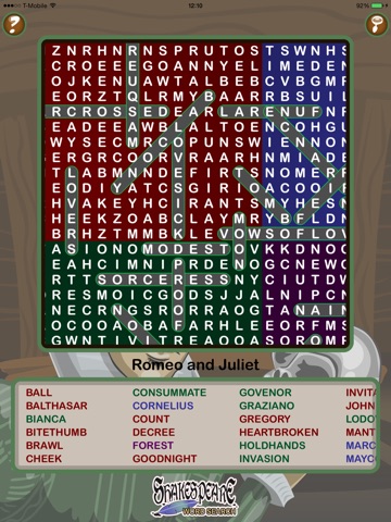 Epic Shakespeare Word Search was compiled from user submissions in Word Search Party, also by Lightwood Games. Like our record-besting game Word Search 10K, it has been hand-crafted to form one continuous puzzle with words in every direction.