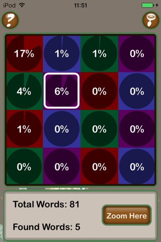 Use two fingers to scroll around the massive grid, then drag with one finger to highlight a word. Zoom out at any time to see a summary of your progress.