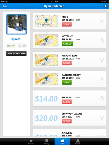 EpicTab is a simple way to keep a running total of bills between you and your facebook friends. With the EpicTab app you can eliminate the fuss of messy IOU’s, and easily track the amount, location, and time of bills split amongst friends.