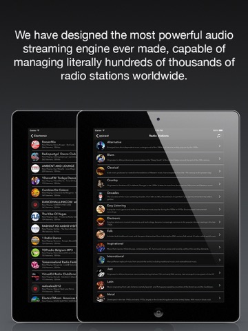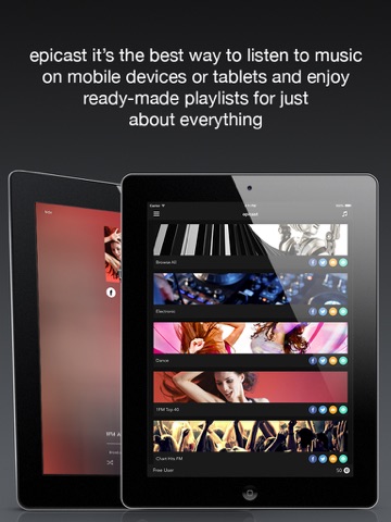 epicast is the best way to listen to music on mobile devices or tablets and enjoy ready-made playlists for just about everything. We have designed the most powerful audio streaming engine ever made, capable of managing literally hundreds of thousands of radio stations worldwide.