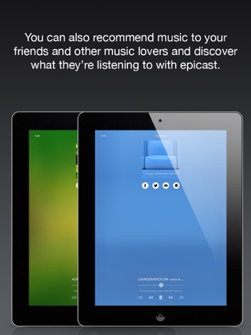 music selection available. You can also recommend music to your friends and other music lovers and discover what they’re listening to with epicast.