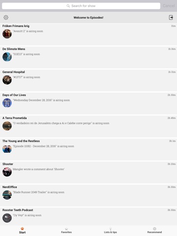 Perform a search, add to your favorites and keep track of when the next episode is aired and on recently aired episodes.