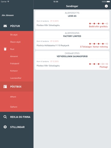 Einnig er hægt að fylgjast með þeim sendingum/pökkum sem þú ert að fá til þín og valið þér Póstbox sem afhendingarstað.