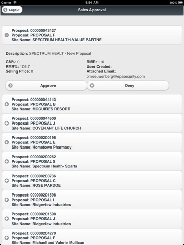 The Sales Approval app provides the ability to easily view all open sales proposals and approve or deny them with the press of a button. Use the Sales Approval app to view the Gross Margin (GM), Reoccurring Monthly Revenue (RMR), and the selling price of each proposal on your mobile device, ultimately giving you the power to view and manage sales proposals in the palm of your hand.