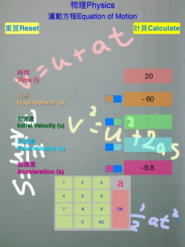 用法:輸入其中三項,然後按“計算”,其餘兩項便會自動計出。