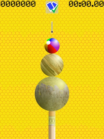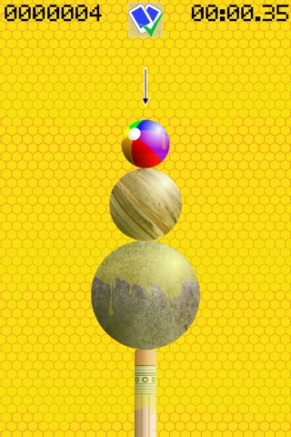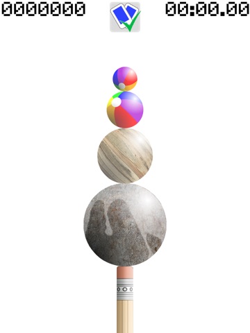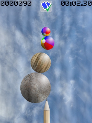 A simulation of one sphere (up to four, one on top of the other!) which you have to keep in balance on the top of a pencil. It begins with a beach ball in a dense atmosphere of honey, but if you really want to achieve a high score youll have to switch to wooden or even granite spheres in milk or air and to sharpen your pencil. The game is controllable through the devices orientation or by dragging the pencil. Only portrait orientation is supported!