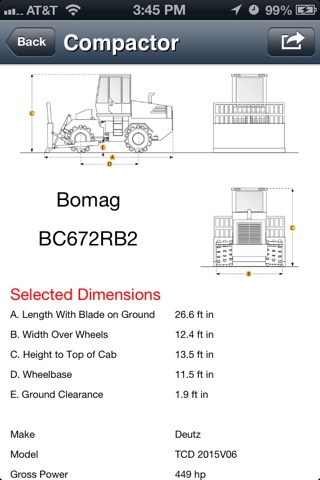 Heavy equipment specifications for over 12,000 pieces, loan calculator, rental rate estimation calculator, fault/flash code descriptions for truck ABS and diesel engines.