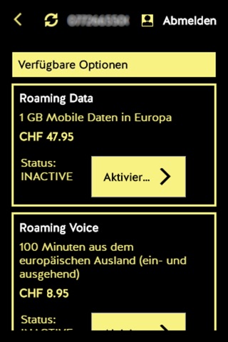 You can also check the status of your option usage. The included services used for all activated options will also be displayed.