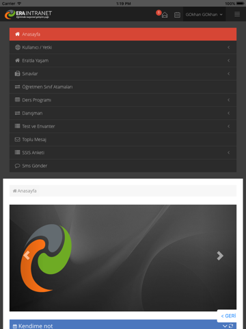 Era Intranet üzerinden öğrencilerin ders programı,yemek listesi,ödevler gibi verilere ulaşılabilir. Era Intranet üzerinden gönderilen mesajlar anlık bildirim olarak cihazınıza gelir.
