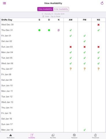 • Availability - View &/or enter up to 2 weeks casual availability, including flexible options for high priority standby, double shifts and all day off.