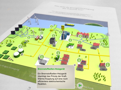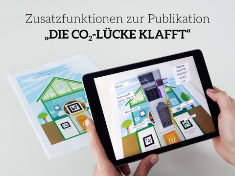 Mit dieser App können Sie in der Publikation „Die CO2-Lücke klafft“ viele Zusatzfunktionen aktivieren. Erleben Sie, wie auf dem Papier Autos anfangen zu fahren, Heizungen in 3D erscheinen oder das Modell einer Zukunftsstadt mit Energie versorgt wird.