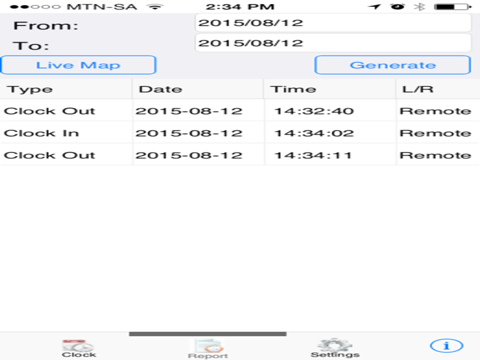 The ERS Mobile app allows the SmartPhone user to clock IN or OUT remotely from their SmartPhone with the added benefit of accurately plotting the event on a Map through their GPS co-ordinates. The app provides reporting of all clocking traffic of the SmartPhone user.