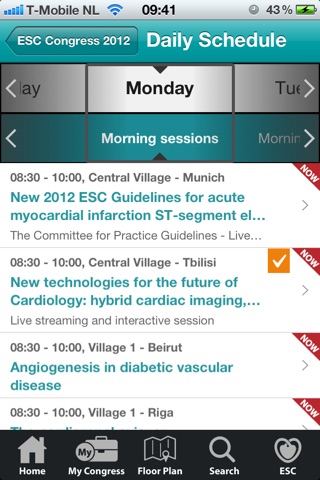 The mobile app for the ESC Congress 2012, 25 - 29 August 2012, Munich, Germany. The ESC Congress is currently the world’s premier conference on the science, management and prevention of cardiovascular disease. Search & browse sessions, presentations, posters & abstracts. Create your personalised Congress programme. Navigate the Congress venue on interactive maps, locate Villages, rooms and exhibitors. Find practical congress information. Search the entire scientific programme. Receive daily news. And much more. Before first use, youll need to download the latest conference data. Afterwards, you can use the app offline although updates will be available regularly before and during the Congress.This app is provided by the European Society of Cardiology. To sponsor other ESC applications contact [email protected]