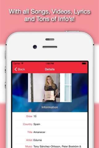+ View detailed information about the songs & countries, including YouTube videos, lyrics, flags and many more info’s!
