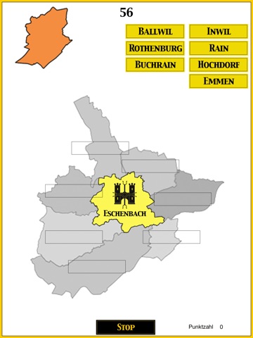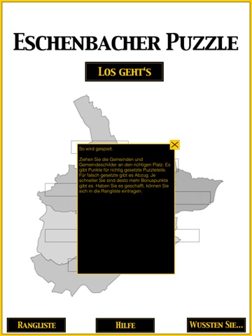 Ziehe die Gemeinden und Gemeindeschilder an den richtigen Platz. Es gibt Punkte für richtig gesetzte Puzzleteile. Für falsch gesetzte gibt es Abzug. Je schneller du bist, desto mehr Bonuspunkte gibt es.