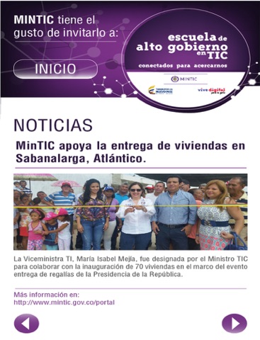 Aplicación móvil en donde se encuentra la agenda del evento, mapa de la ubicación del hotel y noticias e imágenes de MinTIC.