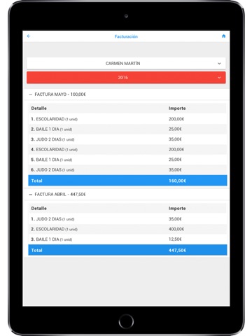 - Accede al resumen mensual del alumno.
