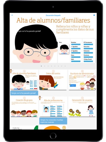Con acceso fácil e intuitivo, le ofrece información en tiempo real, actualizada y de gran utilidad para la comunicación con el centro escolar y el seguimiento del día de sus hijos pudiendo consultar el absentismo, calificaciones, menús de comedor, incidencias, tareas para trabajar en casa, eventos, galerías de fotos,facturación, etc...