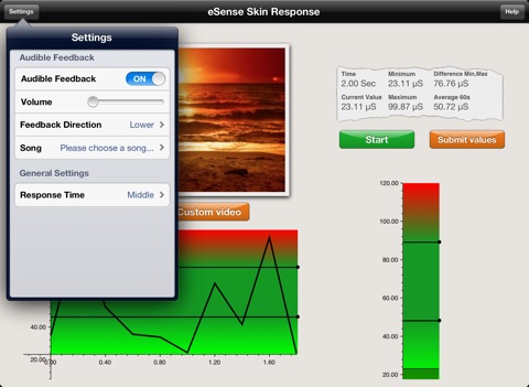 free App is provided from Mindfield® to illustrate your skin conductance in different ways. You can export the values via e-mail and have different possibility for biofeedback training.