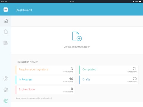 • Offline access to transactions with the ability to create and sign documents when an internet connection is unavailable. Transactions are automatically synchronized once the device is back online