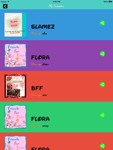 eSlammies an application for storing the sweet memories into a book and let you make laugh when you read it in future. You can write down your friends secrets, their bad deeds, their memories and a lot more.