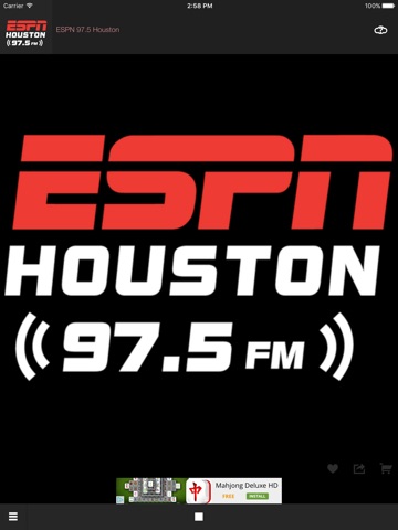 Houstons only FM sports station is ESPN 97.5! Listen live now! (Please note: This app features Nielsen’s proprietary measurement software which will allow you to contribute to market research, like Nielsen’s TV Ratings. Please see www.nielsen.com/digitalprivacy for more information.)