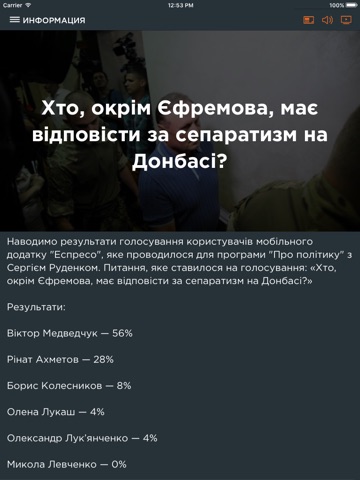 До речі, в додатку доступний прямий ефір телеканалу Еспресо. Онлайн трансляція доступна під час читання новин або участі в голосуваннях.