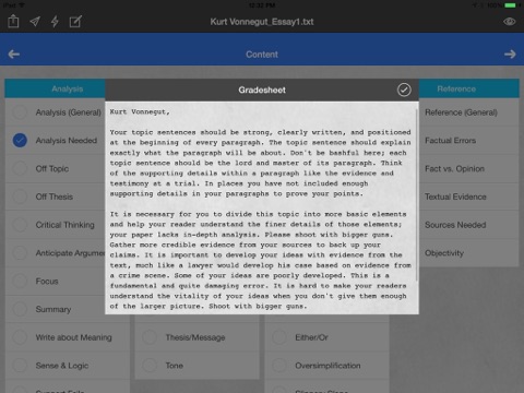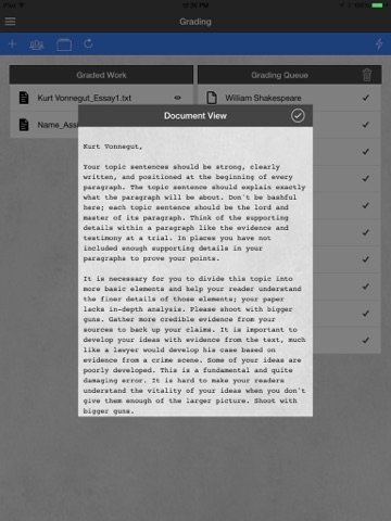 Essay Grader is not automatic grading software but a fully customizable app that eliminates the need to write the same comments over and over by hand.