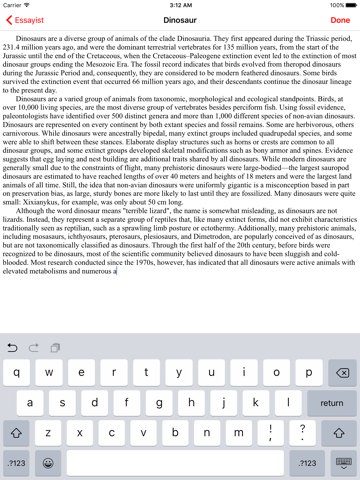 Used a few of the suggested topics and was shown a blank page. *** Update - As the developer noted you just have to type on the keyboard for your essay to appear. Problem is the text is mirrored directly from Wikipedia, word for word.