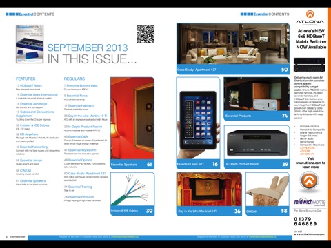 Essential Install Magazine is the only dedicated trade magazine for the custom install industry. Each issue is packed with features, comment, news, product releases, opinion and case studies, keeping readers at the leading edge of this innovative industry which provides 21st century entertainment and automation technologies, making buildings smatter, more efficient and more fun!