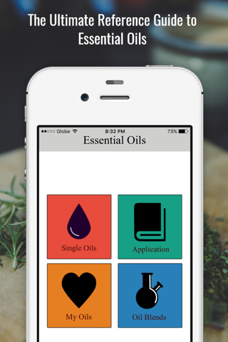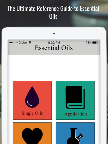 The app contains detailed information on Essential Oils, including: