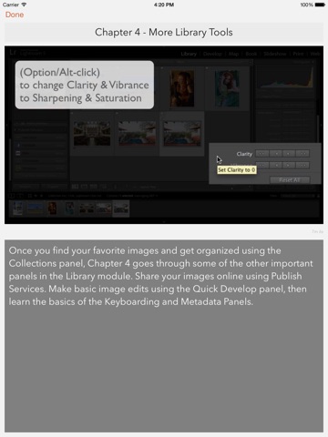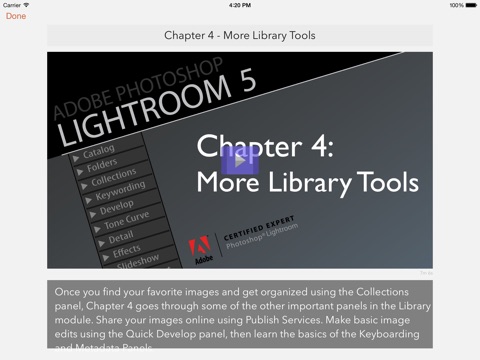 This app contains over 90 minutes of instructional videos covering the two modules in Lightroom where you’ll spend the most time: the Library module and the Develop module. Adobe Certified Expert Rob Knight starts at the beginning with a description of the Lightroom interface. Then he follows his workflow from importing photos to exporting the final edited images.This course doesn’t cover every tool in Lightroom, but it covers the essential tools that Rob uses every day to organize and optimize his images. Rob has been using Lightroom since it’s first public beta, and he is excited to share his efficient organizing and editing workflow with you!