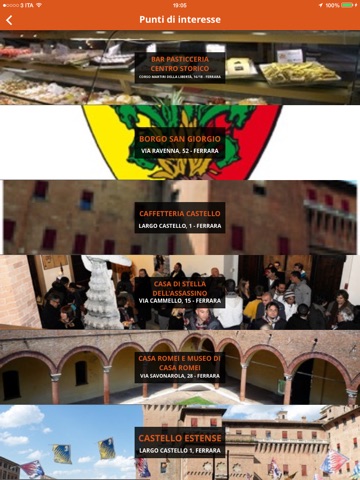 E possibile — attraverso la tecnologia della Realtà Aumentata — accedere a contenuti multimediali relativi a quanto ripreso dalla fotocamera del dispositivo. Il modulo AR offre informazioni geolocalizzate in maniera facile e intuitiva per tutti gli utenti; permette, inoltre, di visualizzare foto, video, social network e risorse disponibili in rete, puntando la fotocamera del proprio dispositivo su cartoline, poster e direct marketing degli esercizi convenzionati con Ente Palio Ferrara.