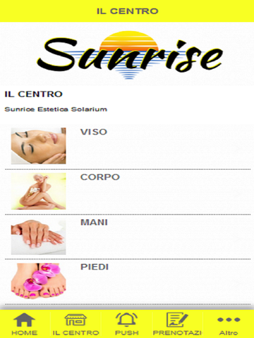 Il CENTRO ESTETICO SUNRISE si prende cura di te, con trattamenti estetici, massaggi e solarium. Un ambiente sobrio e rilassante gestito da personale qualificato.